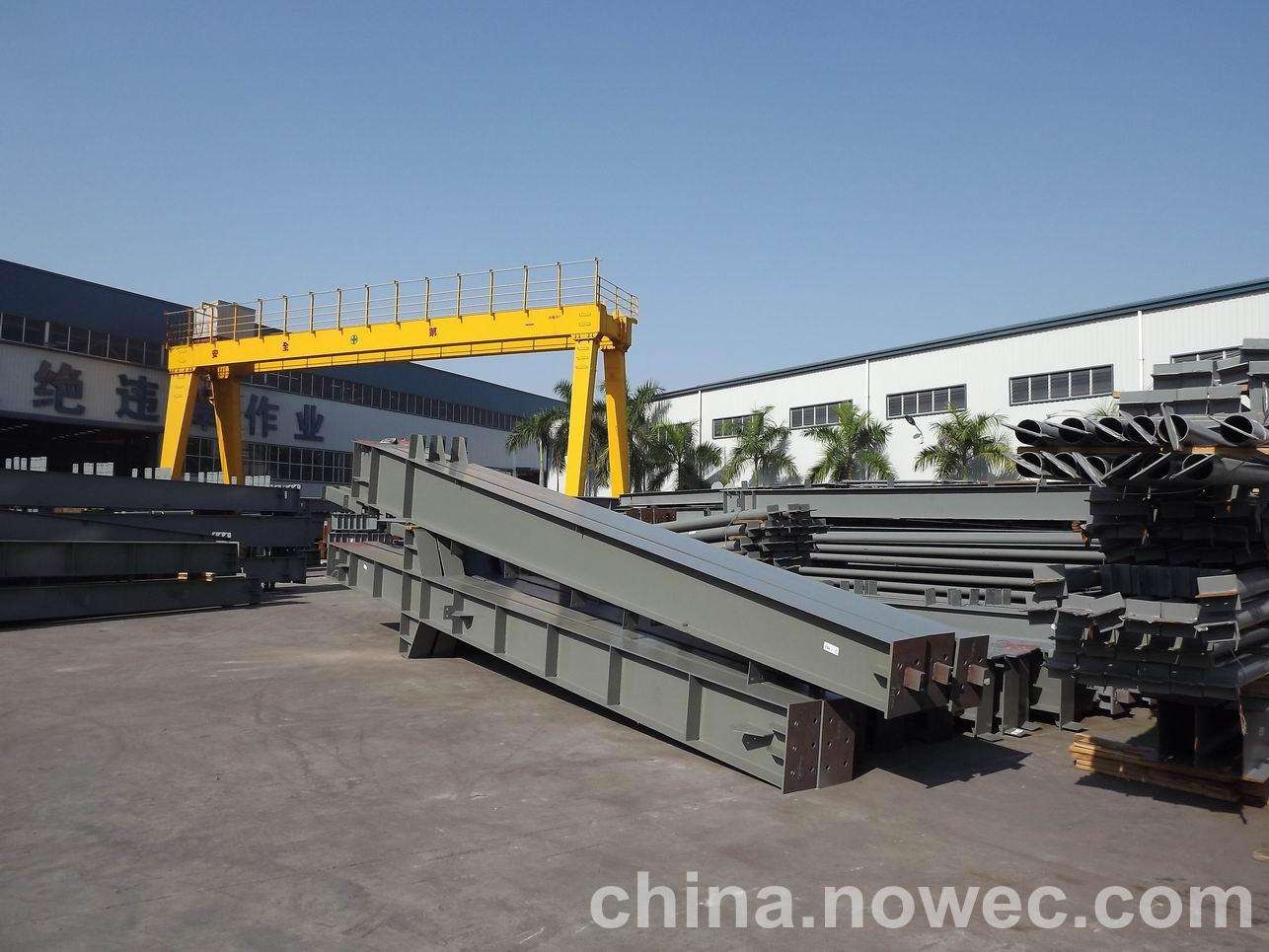 条状单元一般沿长跨方向分割,其宽度约为1~3个网格,其长度为l2或l2/2(l2为短跨跨距)。块状单元一般沿乐陵网架平面纵横向分割成矩形或正方形单元。每个单元的重量以现有起重机能胜任为准。条(块)与条(块)之间可以直接拼装,也可空一网格在高空拼装。由于条(块)状单元是在地面拼装,因而高空作业量较高空散装法大为减少,拼装支架也减少很多,又能充分利用现有起重设备,故较经济。这种安装方法适用于分割后网架的钢度和受力状况改变较小的各类中小型网架,如两向正交正放四角锥、正放抽空四角锥等网架。